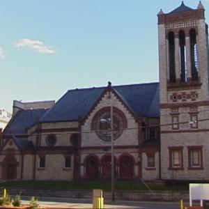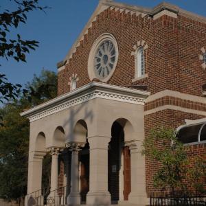 A major rebuilding of the top of the tower, and a complete pointing and cleaning of the building returned this colorful blend of sandstone to its original beauty.