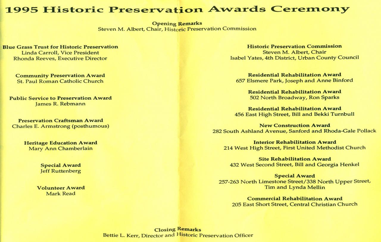 Historic Preservation Week Awards 1995